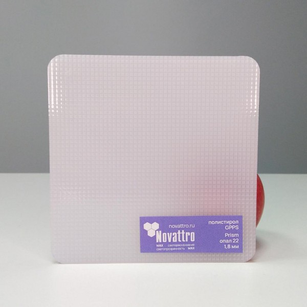 Полистирольный рассеиватель опалового цвета с рифленой поверхностью prism для усиленного рассеивания света. Совмещает преимущества двух видов рассеивателей в одном: с одной стороны обеспечивает мягкое рассеянное освещение, с другой стороны стороны обеспечивает высокое светопропускание.