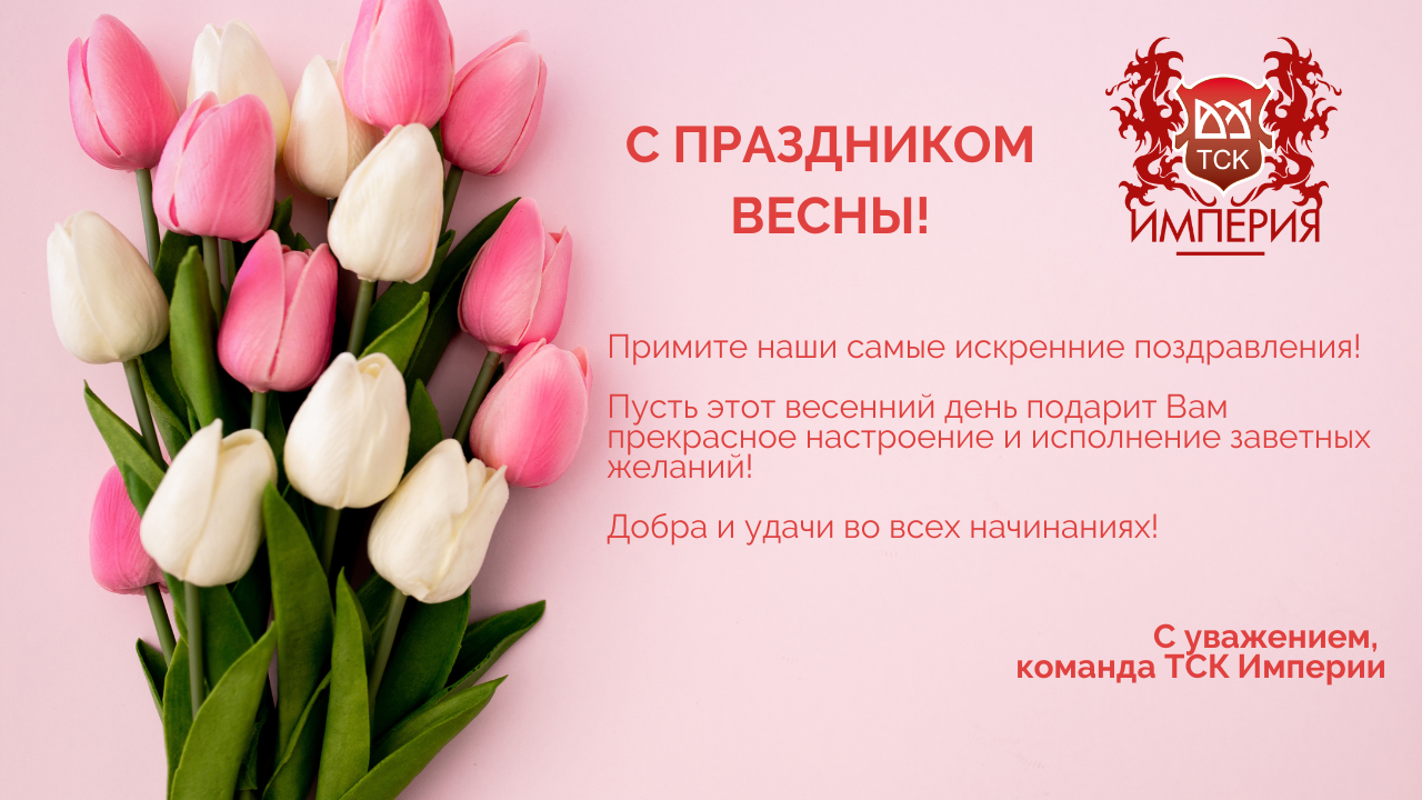 Коллектив "ТСК Империя" от всей души поздравляет всех клиентов, а также своих партнеров с Международным женским днем!