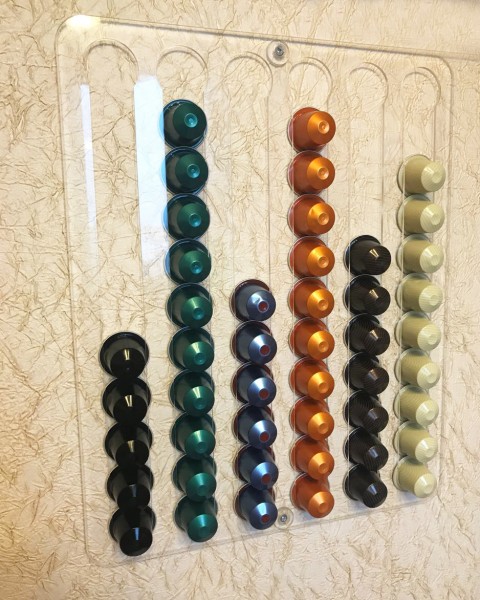 Диспенсер для кофейных и чайных капсул совместимых с капсулами Nespresso, Greenfield, Starbucks, Hollandsche Brands, Jardin — отличная идея! Держатель для капсул из поликарбоната сэкономит ваше пространство, прекрасно впишется в интерьер и станет удобным дополнением на кухне.
