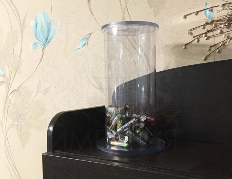 Прозрачный контейнер для сбора отработанных батареек подходит для использования дома, в офисах, магазинах и торговых центрах.