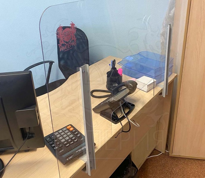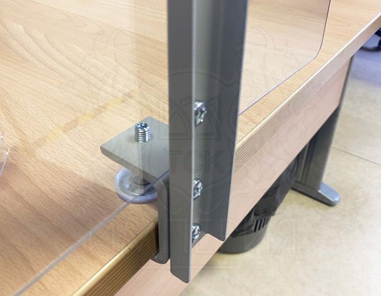Алюминиевые крепления для защитного экрана. Позволяет легко закрепить экран к торцу стола, ресепшену, любому другому рабочему месту, не занимая полезное пространство.