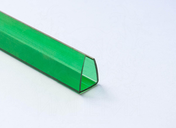 П-образный замыкающий профиль, предназначенный для защиты сот панелей поликарбоната от попадания в них механических частиц, загрязняющих внутренние полости листа сотового поликарбоната, обеспечивая при этом циркуляцию воздушного потока; декоративного обрамления панелей поликарбоната; придания эстетической законченности, как при вертикальном, так и при арочном остеклении.