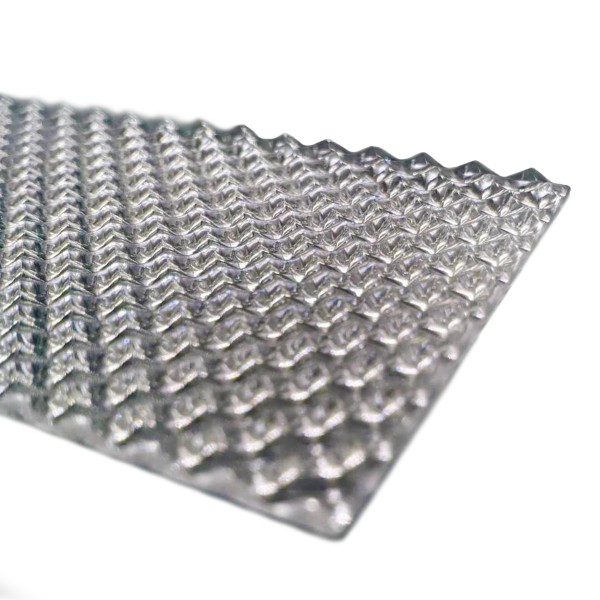 Прозрачный текстурированный полистирол – лёгкий и прочный листовой материал с рельефной поверхностью. Отличается высокой прозрачностью и эстетичной фактурой, которая рассеивает свет и создаёт эффект приватности.