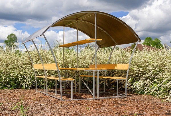 Опции: изготовлен из оцинкованных стальных труб. Собирается с помощью болтов и гаек. В комплект входит всё необходимое для крепления покрытия и досок.