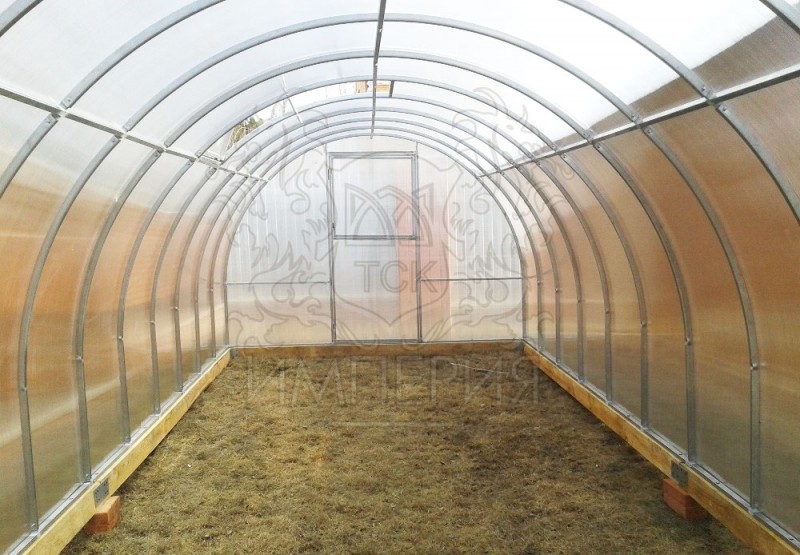 Если теплица остается без присмотра, обязательно на зиму установите подпорки из жердей под узлы соединения дуг и продольных деталей равномерно вдоль продольной оси теплицы.