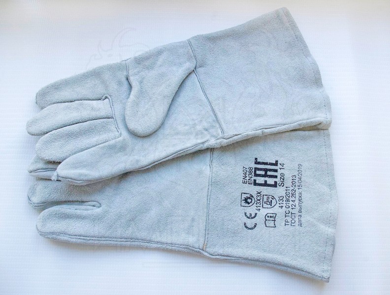 Краги изготовлены из высококачественной расщепленной телячьей кожи.