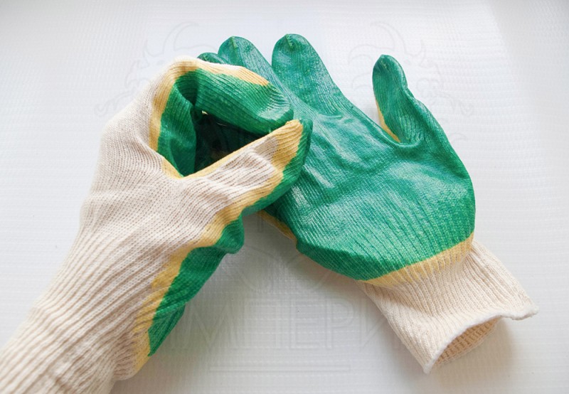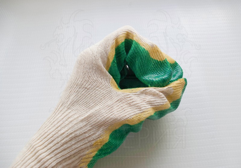 - трикотаж х/б с двойным латексным покрытием ладонной части и кончиков пальцев, устойчивы к проколам и порезам;