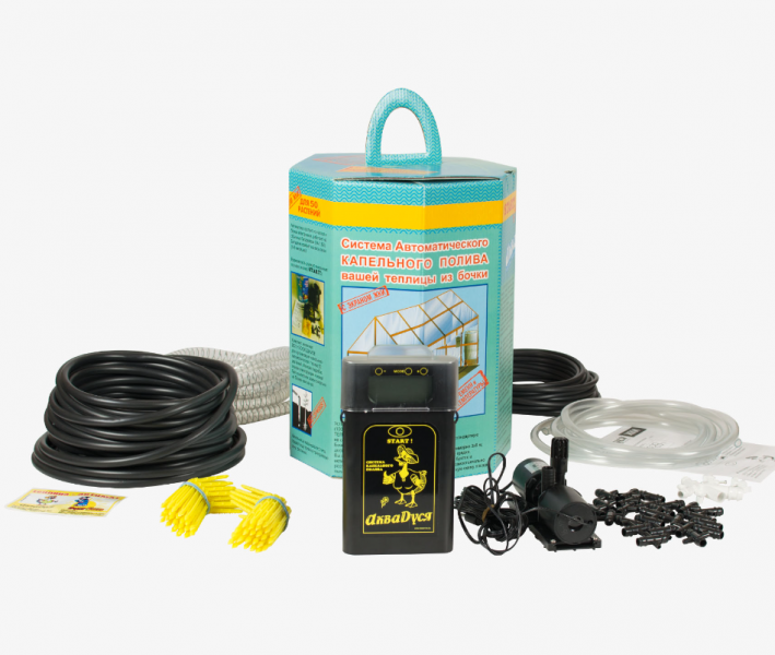 Капельный полив – один из наиболее современных и благоприятных методов доставки жидкости к растениям. Благодаря тому, что вода поставляется напрямую к корням с помощью устройств карандашного типа, не вымывается плодородный слой почвы, а на ее поверхности не образуется корка, препятствующая доступу воздуха. При этом немаловажно, что на листья не попадают капли влаги – на жарком солнце это может привести к ожогам. Капельный полив АкваДуся Старт 50 обеспечивает растения необходимым объемом воды, подаваемой в соответствии с заданной вами программой. Система охватывает обработку 50 кустов или участка площадью 3×6м. Автоматическое включение дает возможность вам изначально установить необходимый режим полива, который будет соблюдаться системой неукоснительно. По желанию график можно изменить. Мы рекомендуем к системе полива Старт питание давать хорошими, проверенными батарейками.