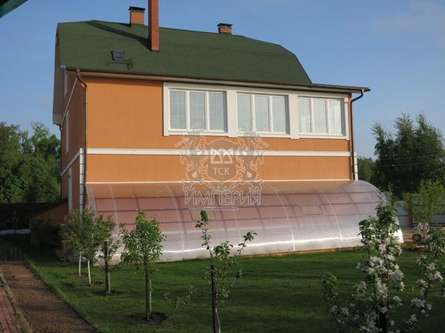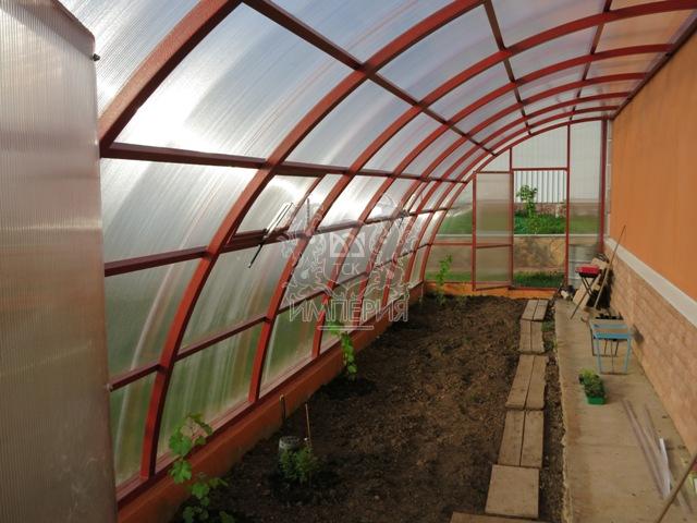 Компания "ТСК Империя" осуществила расчет, комплектацию и поставку теплицы примыкающей к дому, по индивидуальным размера заказчика.