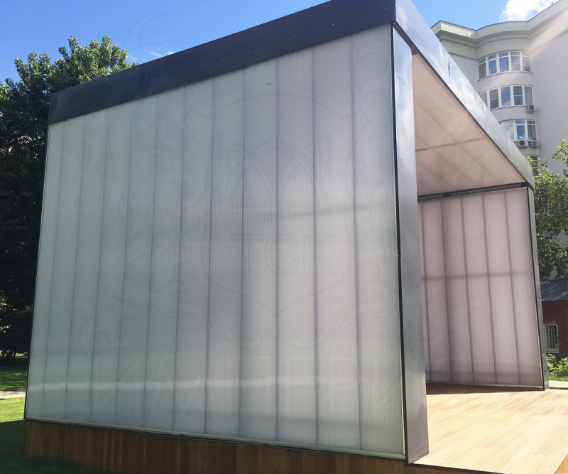 Торгово-Строительная Компания Империя осуществила расчет материала, комплектацию и поставку фасадных панелей из сотового поликарбоната для беседок и павильонов расположенных в Парке культуры и отдыха «Таганский» города Москвы.