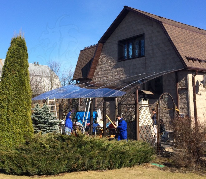 Навес из поликарбоната над террасой