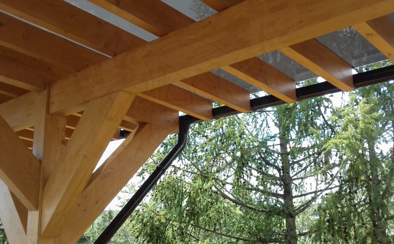 Торгово-Строительная Компания Империя осуществила расчет, комплектацию и поставку под заказ нестандартного монолитного поликарбоната для навеса над террасой GOOD WOOD Plaza.