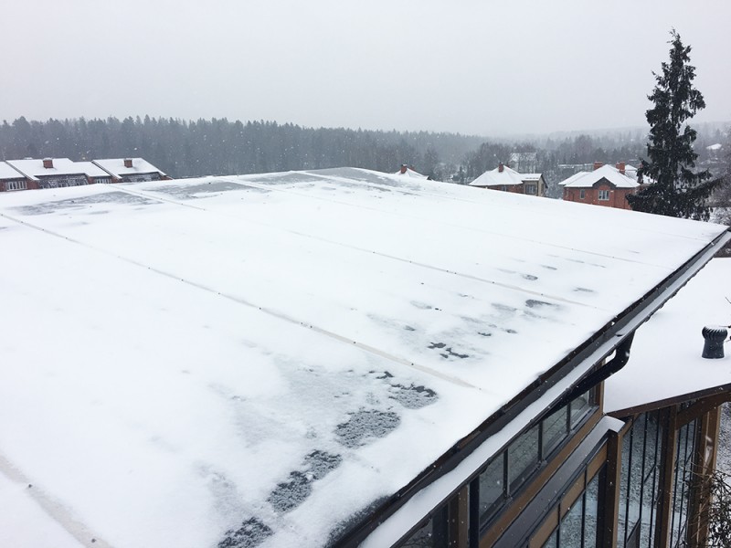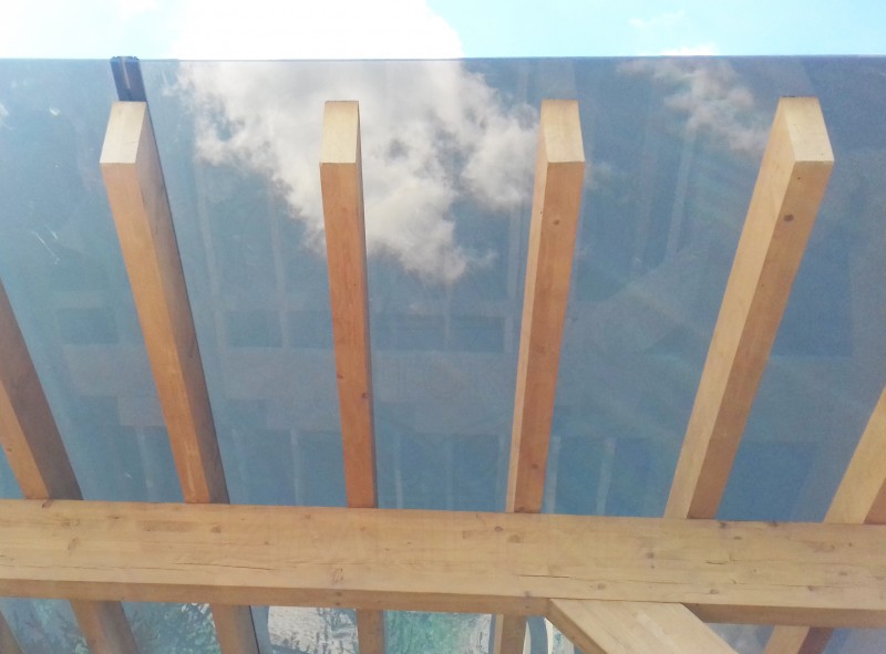Использовался монолитный поликарбонат толщиной 12 мм, цвет бронза, листы поликарбоната нестандартного размера 2050*7500 мм.