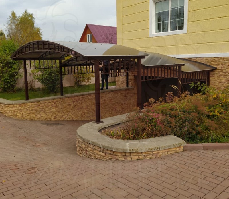 Компания "ТСК Империя" осуществила расчет, комплектацию и поставку материала для навеса. Навес выполнен из сотового поликарбоната Lexan толщиной 10 мм; цвет бронза. Объект выполнен 2020 году.