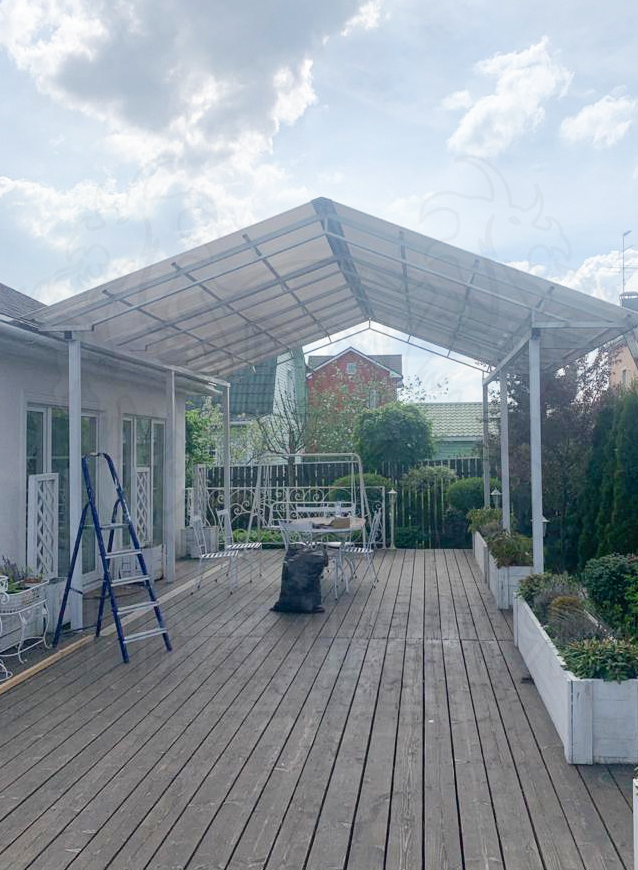 Компания "ТСК Империя" осуществила расчет, комплектацию и поставку материала для навеса в частном доме в поселке Толстопальцево.