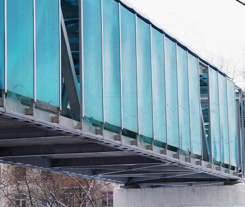 Надземный пешеходный переход выполнялся из монолитного поликарбоната, цвет: бирюза.