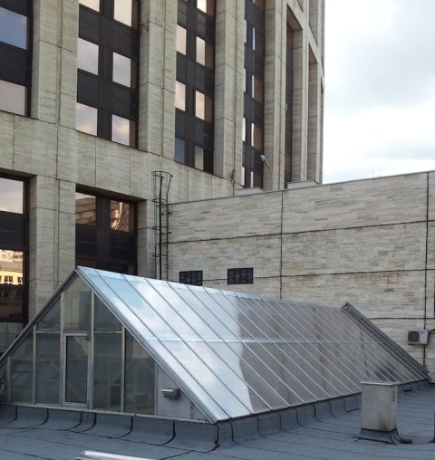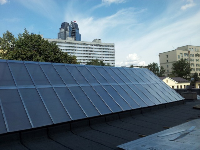 Зенитный фонарь из сотового поликарбоната на крыше здания РосБанка