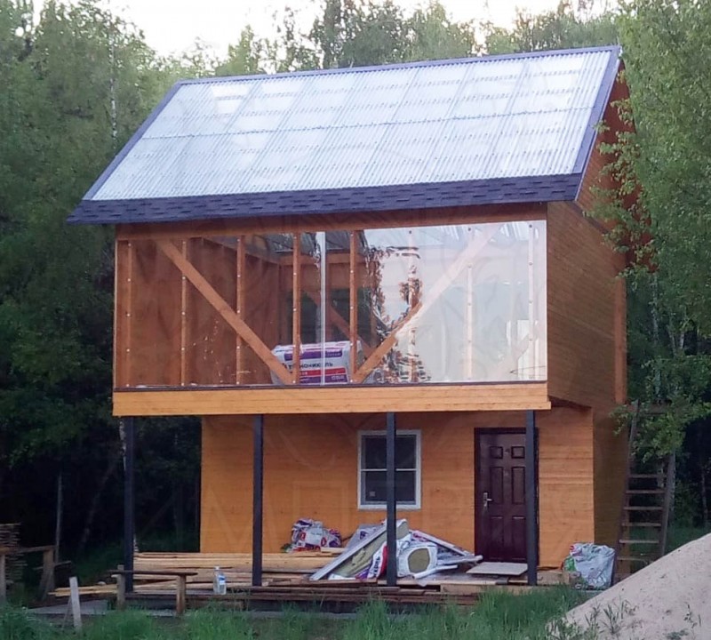 Торгово-Строительная Компания Империя осуществила поставку монолитного поликарбоната для остекления стены и профилированного поликарбоната для остекления крыши летнего дома на дачном участке.