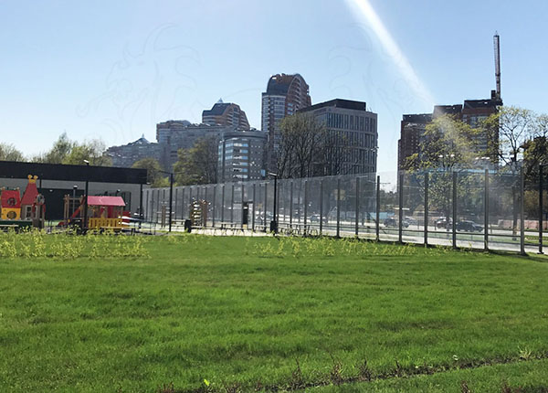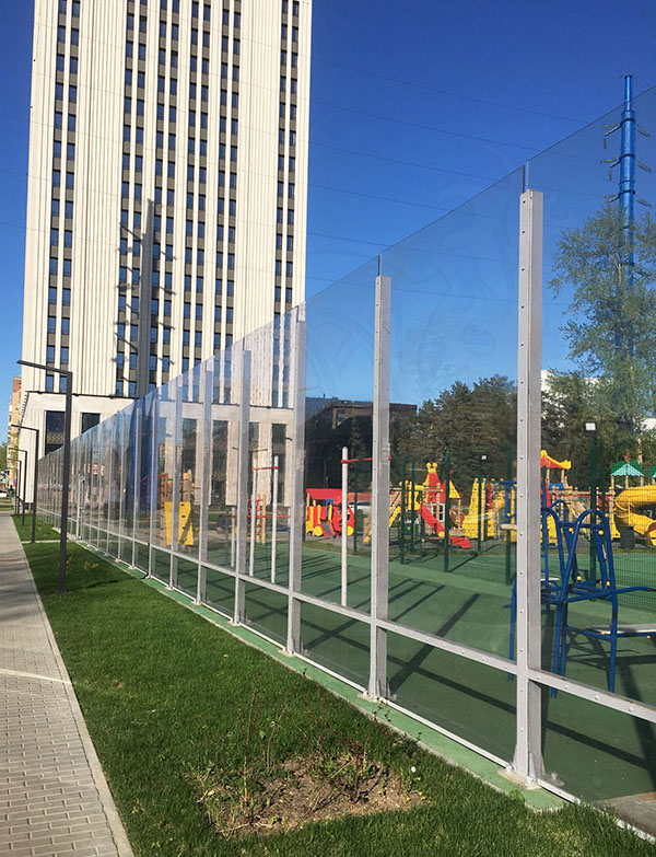 Компания ООО "ТСК Империя" осуществила расчет, комплектацию и поставку монолитного поликарбоната для шумозащитного остекления детской площадки ул. Ленинский проспект, г. Москва.