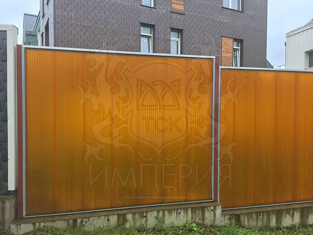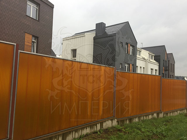 Компания ООО "ТСК Империя" осуществила расчет, комплектацию и поставку фасадных панелей для ограждения коттеджного поселка "Бремен". Панели LEXAN 40мм с совмещенной Х-образной и 4-х стеночной прямоугольной структурой, обеспечивают высокую жесткость, прочность на изгиб и на поперечный сдвиг, а также обладают высоким показателем звукоизоляции, что обуславливает их применение в загородном строительстве вблизи автодорог и других источников шума.