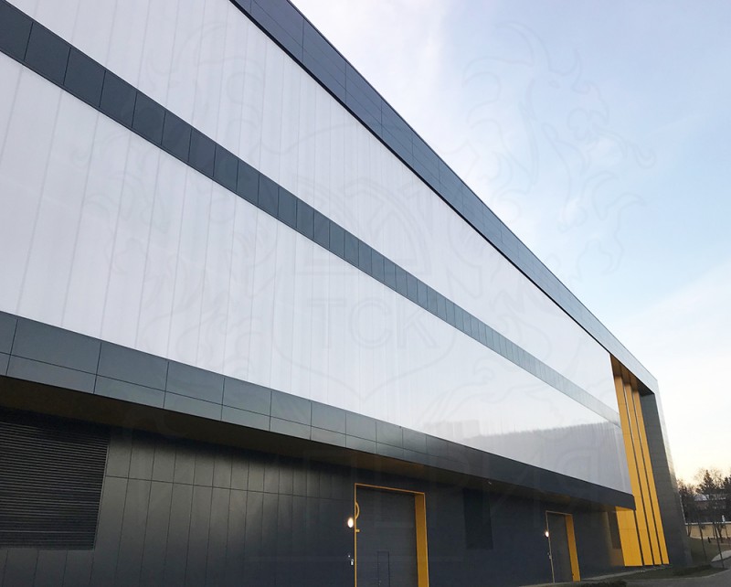 "ТСК Империя" осуществила расчет комплектацию и поставку сотовых поликарбонатных панелей толщиной 50 мм для заполнения светопрозрачного проема фасада складского здания в г. Москва. Площадь заполнения - 1400 м².