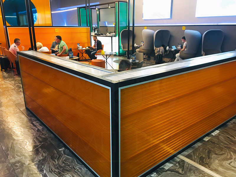 Торгово-Строительная Компания Империя осуществила расчет материала, комплектацию и поставку фасадных панелей из сотового поликарбоната для бизнес-зала S7 Priority. Аэропорт Платов, г. Ростов-на-Дону.