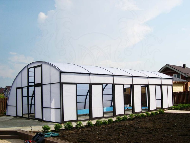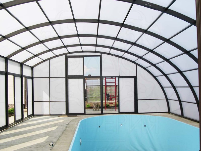Компания "ТСК Империя" осуществила расчет, комплектацию, поставку поликарбоната для навеса над бассейном. Покрытие: - сотовый поликарбонат Lexan Softlite толщиной 25 мм. Цвет: - Softlite