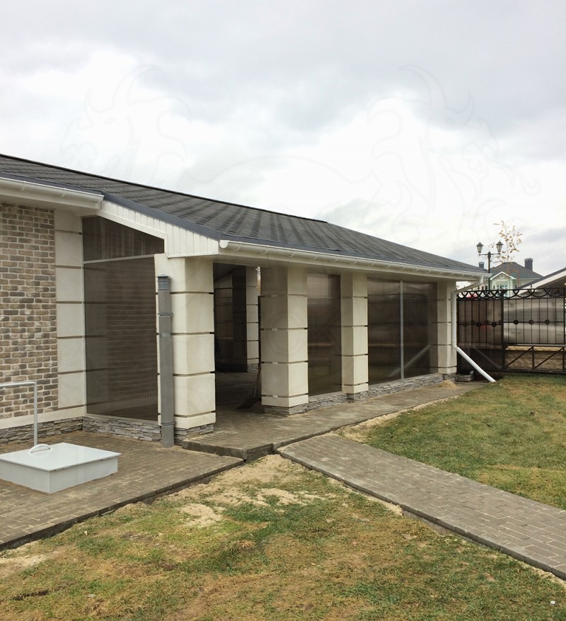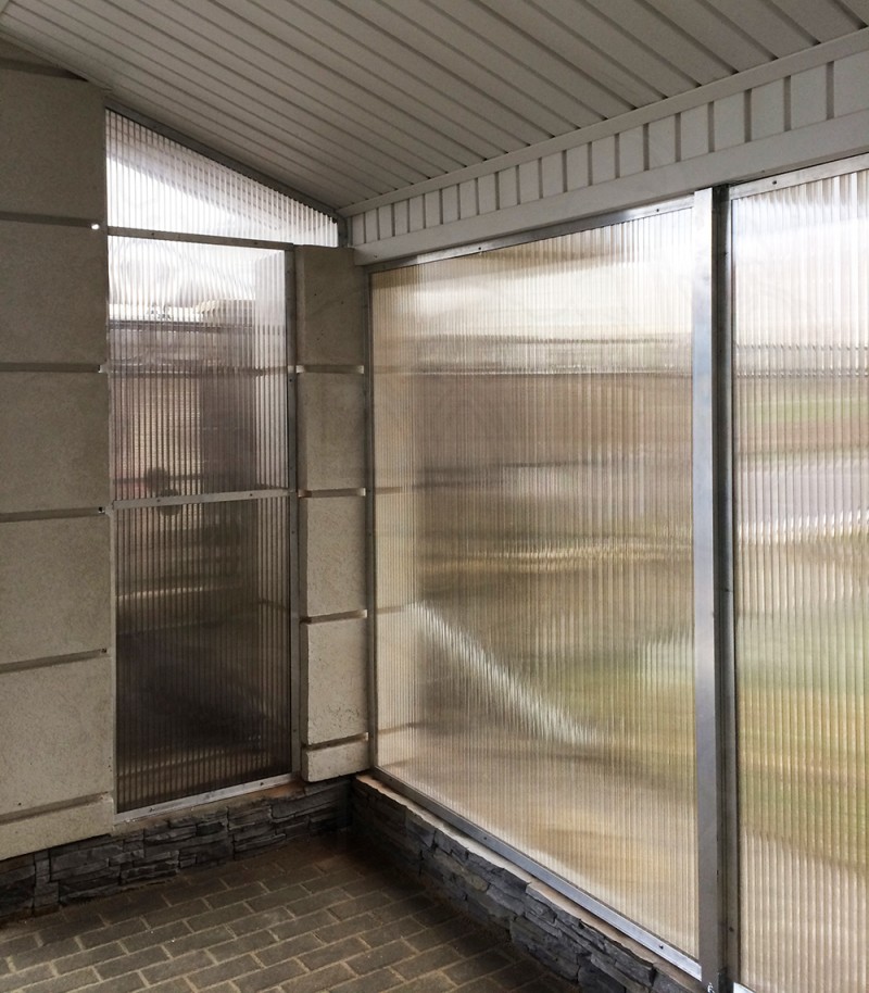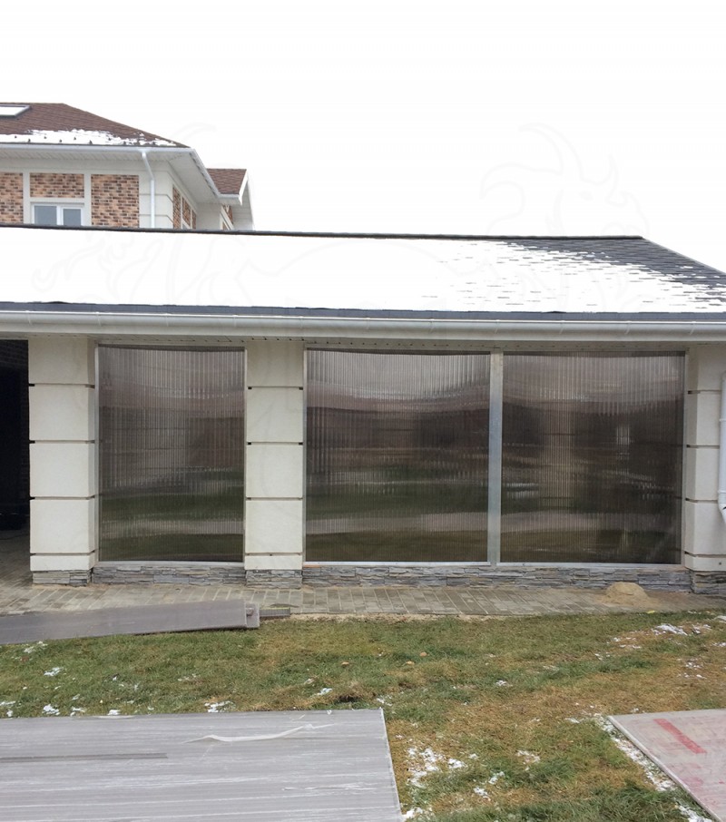 Ограда выполнена из сотового поликарбоната Lexan (Австрия) 6 мм, цвет бронза.