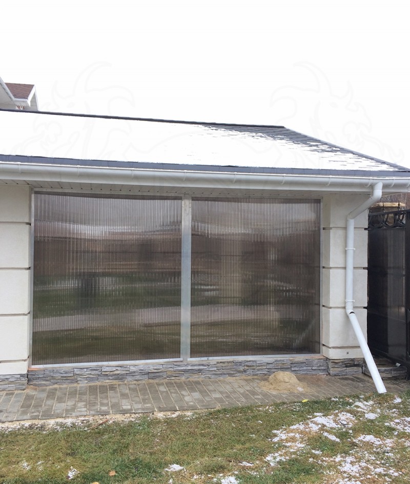 Гараж выполнен из сотового поликарбоната Lexan (Австрия) 16 мм, цвет бронза.