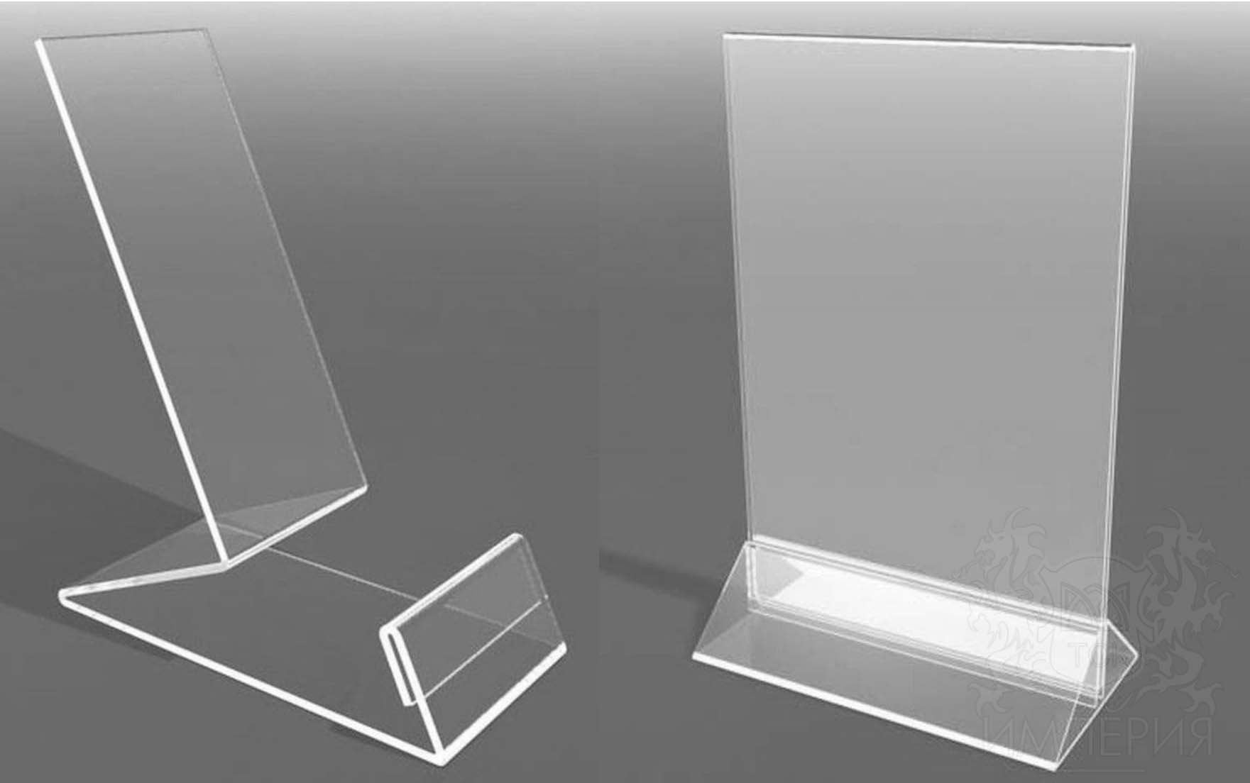 Изготавливаем из поликарбоната и оргстекла: ценники, подставки под обувь, гардеробные номерки, карманы для полиграфии, буклетницы, горки под товар и витрины.