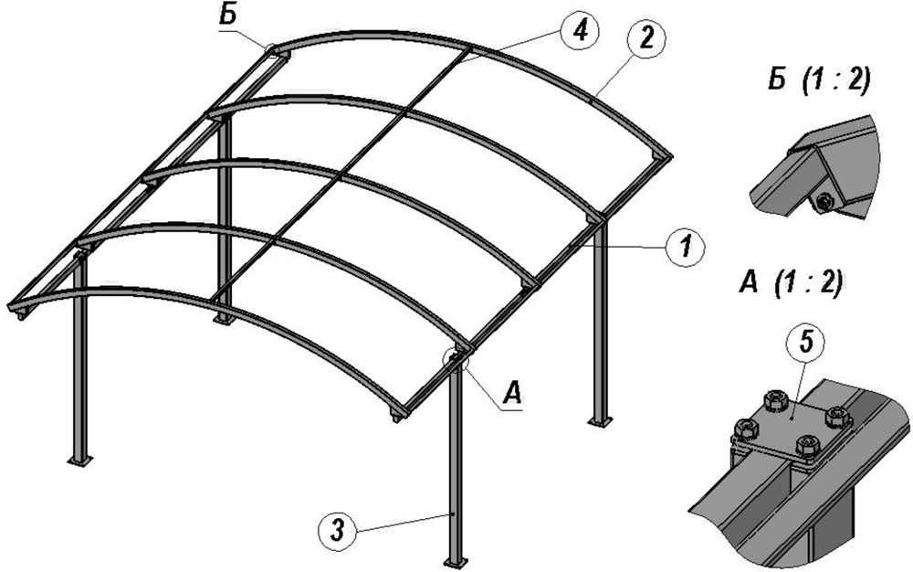 Навесы для автомобилей из поликарбоната монтируются за несколько часов. Металлоконструкции и поликарбонат позволяют создавать навесы разных форм, с различными видами скатов с наклонами, ломаными линиями и прочими проявлениями фантазии заказчика. В собранном виде навес получается очень легким, как по весу, так и по виду, но благодаря прочным стальным прутьям и гибкости исходного материала, такой навес переживет и ураган, и наводнение.