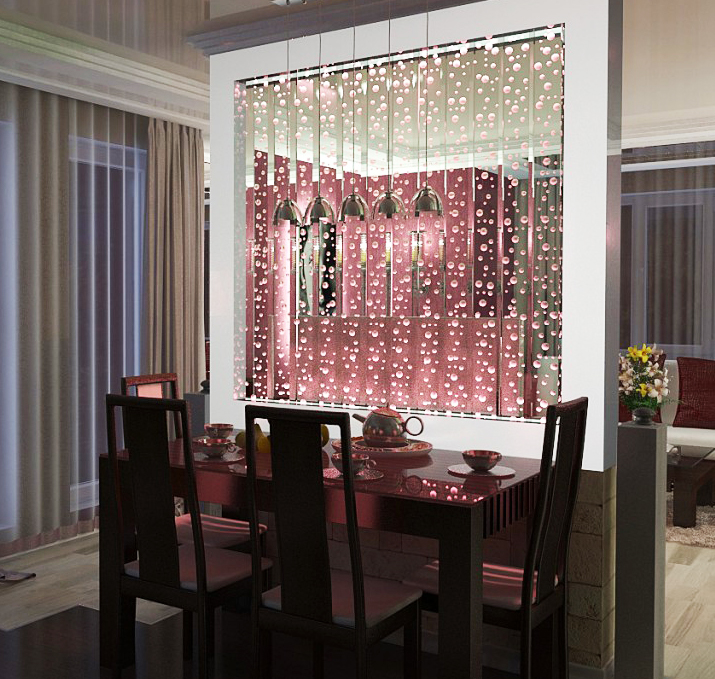 Прозрачность панели делает ее незаменимой для применения и в качестве перегородок в жилых интерьерах, офисах, кафе и магазинах, а также в виде самостоятельного элемента дизайна.