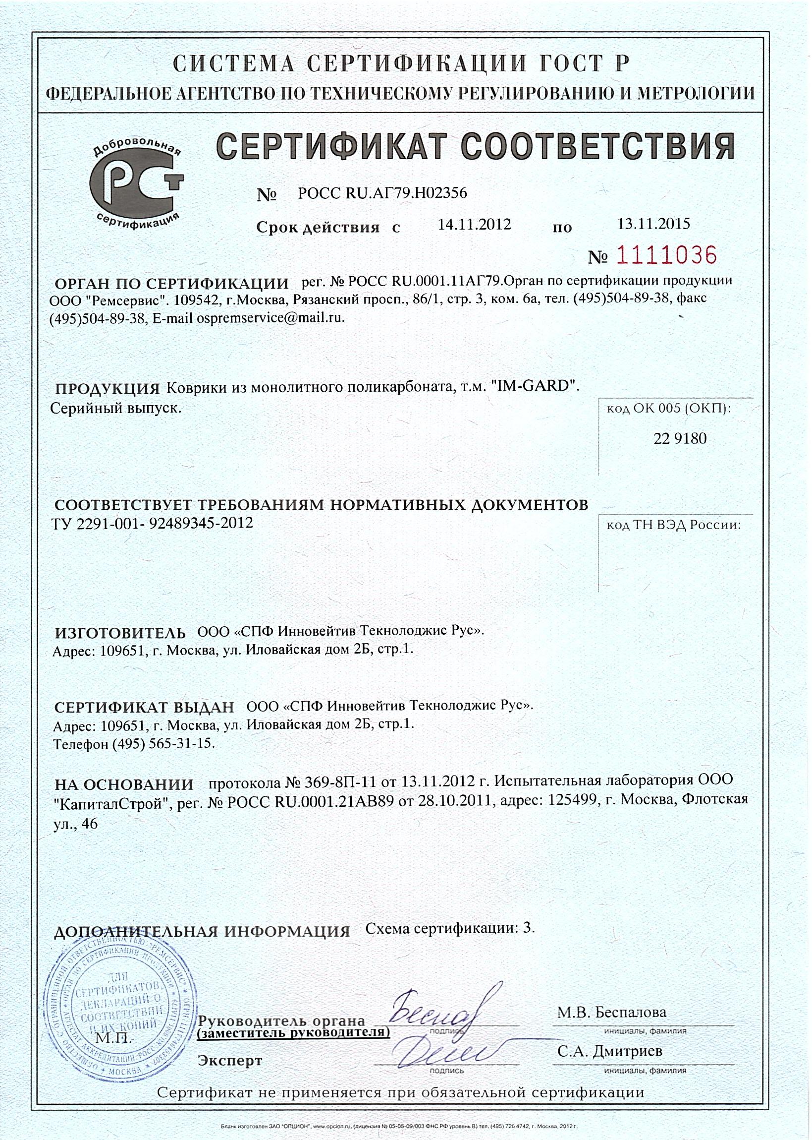 1.  Защитные коврики из поликарбоната IM-GARD (Россия-Италия)