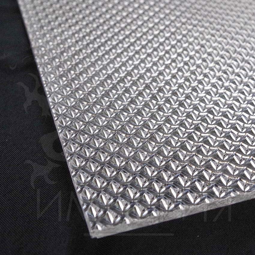 Фактурный полистирол может применяться только внутри помещения, т.к. не имеет защиты от ультрафиолета. Применение полистирола не ограничивается светотехникой. Полистирол фактурный может применяться при производстве мебели (вместо стекла), для душевых кабин, межкомнатных перегородках, для заполнения дверных проемов, витражей. Текстурированный полистирол рассеивает свет с множеством граней.