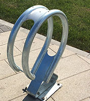 У стоек данных велопарковок нет острых кромок, швов или деталей, которые могут представлять опасность или со временем стать некрасивыми. Правильно изготовленная стойка не повредит раму велосипеда. Конструкция дополнит большинство уличных и архитектурных комплексов, обеспечивая велопарковку, не занимая место на тротуаре или перед зданием. Стойка изготовлена из материалов, достаточно прочных, чтобы противостоять разрезанию или отсоединению при помощи обычного ручного инструмента. Данные велопарковки удобны и компактны они пользуются большим спросом у государственных и муниципальных учреждений за счет доступной цены и повторения логотипа общественного транспорта.