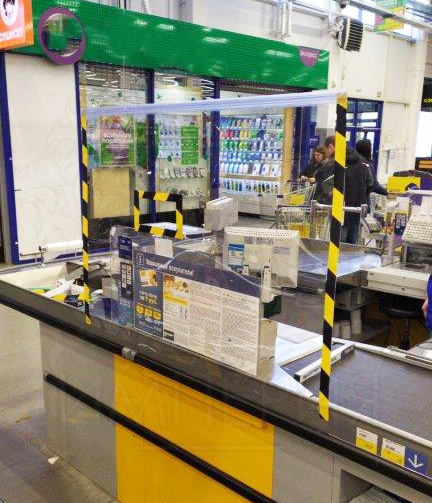 Экран-завеса защищает от прямого контакта кассира с покупателем, а значит снижает риск заражения сотрудника и одновременно его последующего распространения.