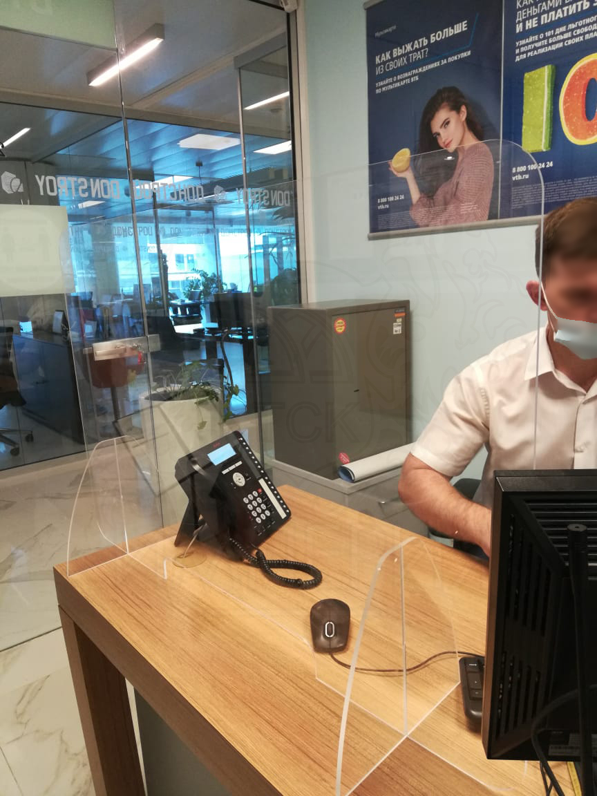 Экран защищает от прямого контакта с посетителем, имеет отверстие в нижней части размером 220*300 мм.