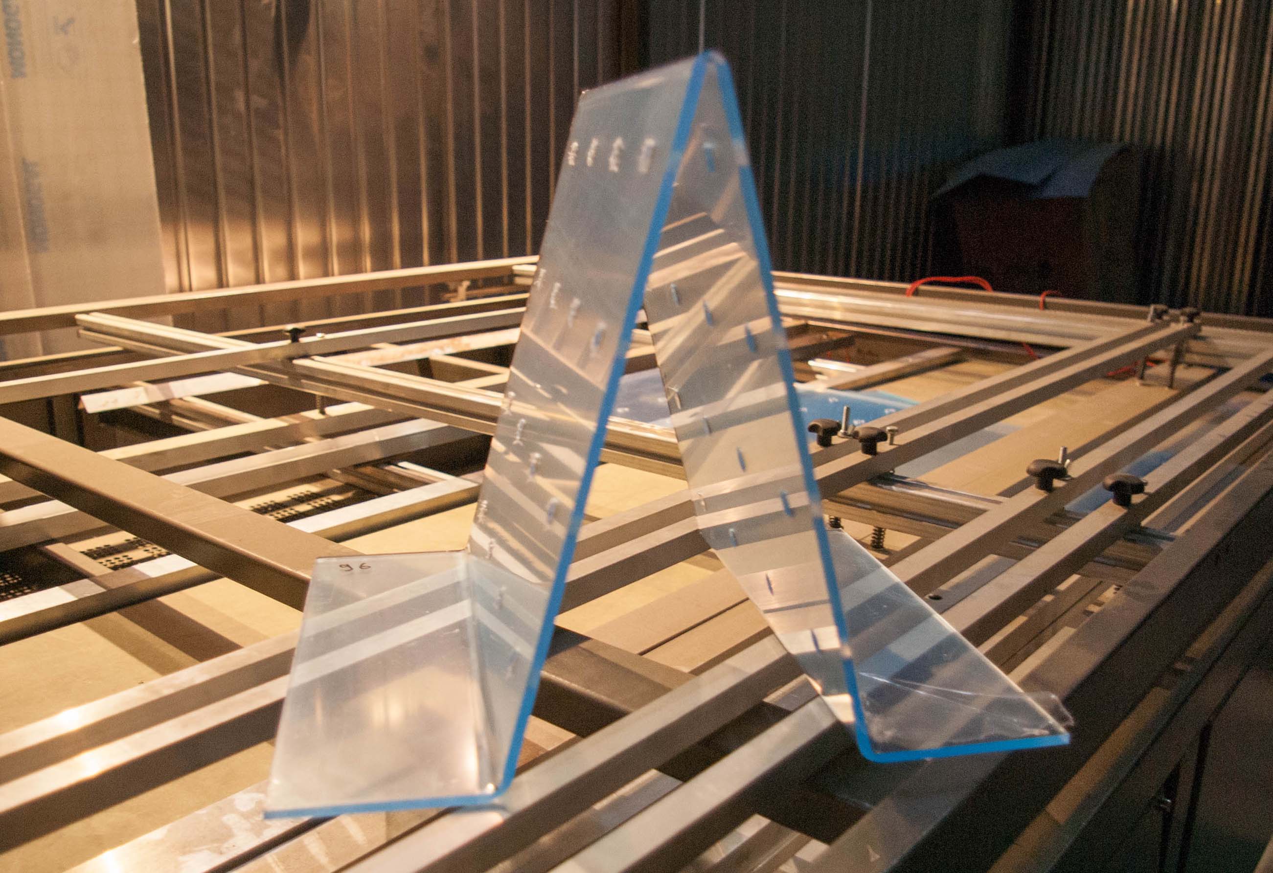 — Подготовка и прогрев: Материал тщательно прогревается по линии предполагаемого сгиба. Благодаря точному контролю температуры и времени нагрева лист пластика становится пластичным и легко поддается формированию.